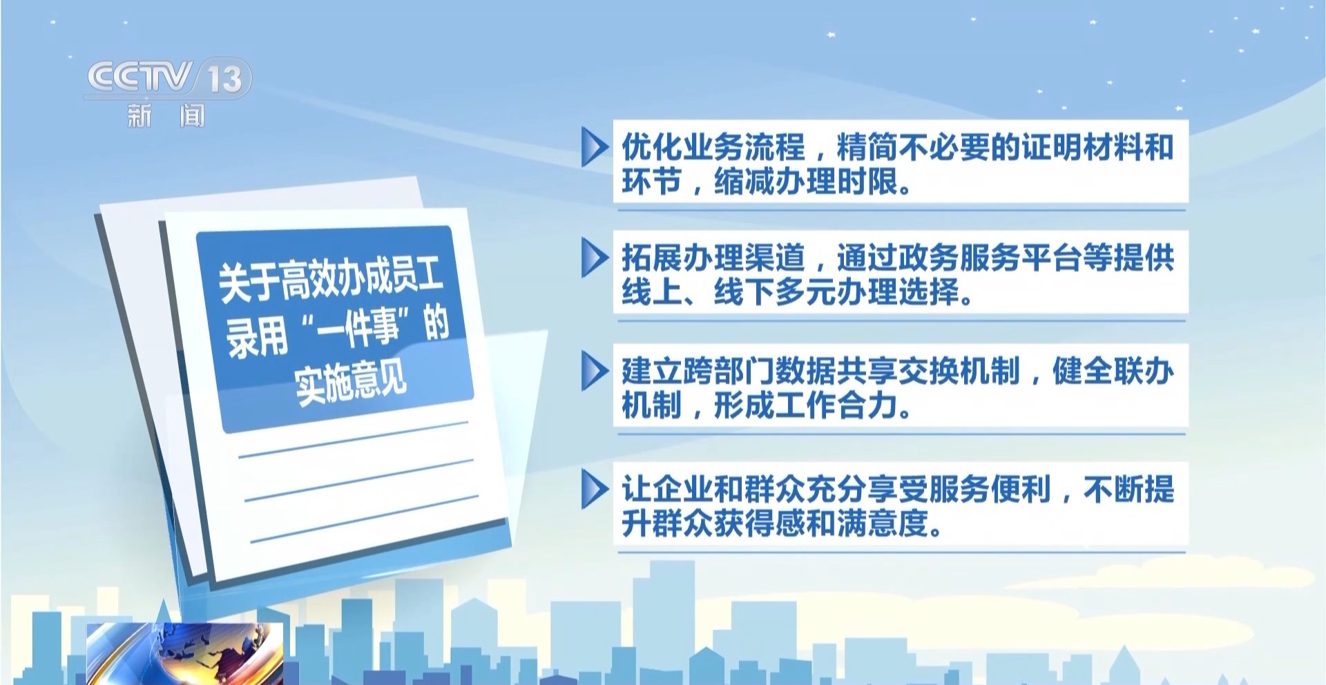 《观念》建议,拼集业登记、流动东说念主员东说念主事档案采用、行状用工备案、职工社会保障参保登记、社会保障卡申领、住房公积金个东说念主账户确立、职工医疗保障参保登记等7个“单项事”整合为“一件事”。