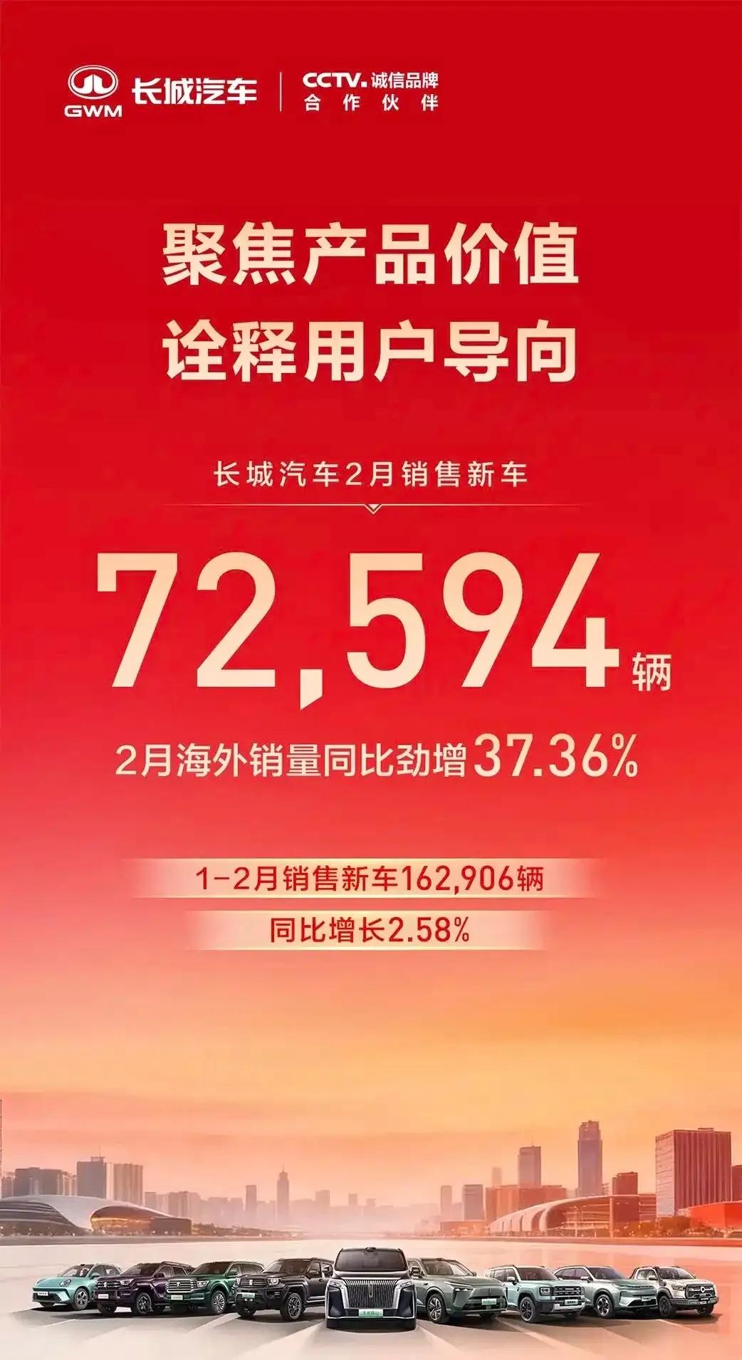 汽车事件三:长城汽车2月销量72594辆
