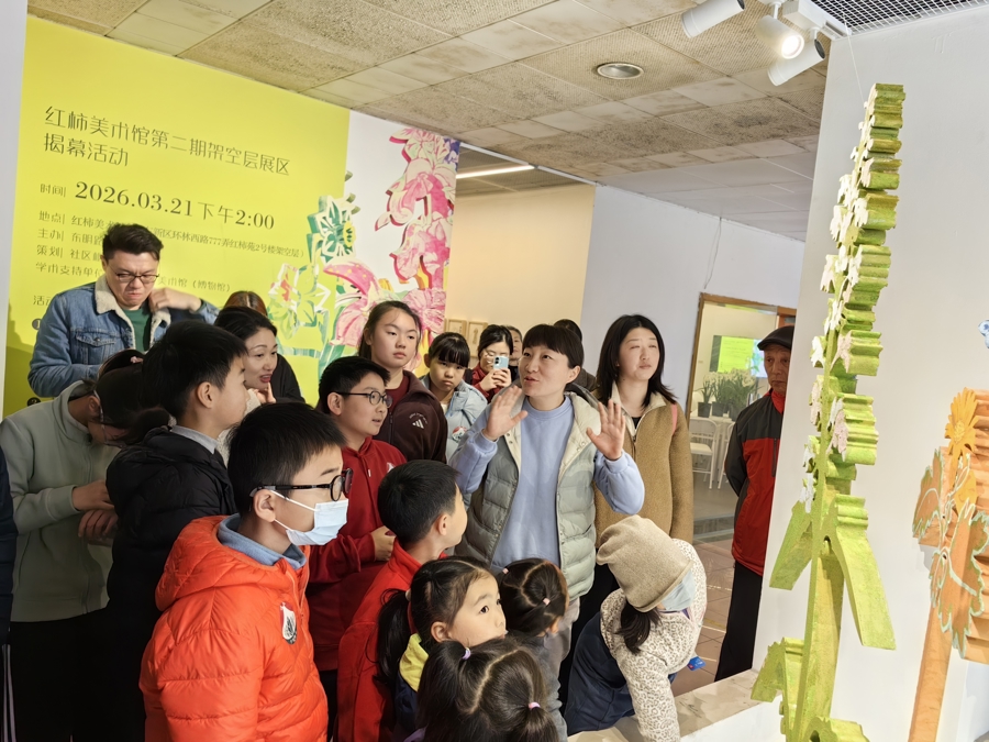算作红柿好意思术馆的蔓延,二期展区还将架空层的一处通谈进行了微更新。通谈墙面上,展示着此前的“海派风华:旗袍布艺拼贴艺术使命坊”中住户们用剪刀与布料拼贴出的城市顾忌。一边是摩登的海派旗袍文化,一边是盼望盎然的原生植物图谱,东谈主文与生态在这里交织。
