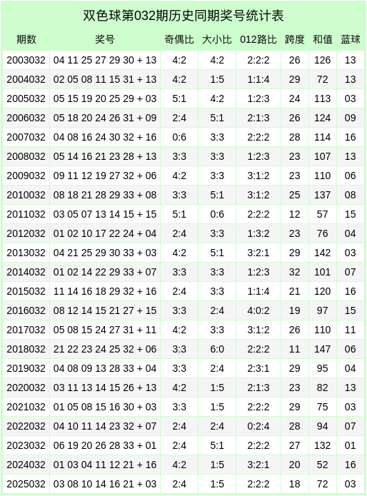 第2026032期双色球历史同时奖号分析