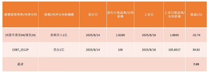 以下表为例,承销商中标25国开清发04 1亿元。此时距上市日还有两个职责日,在此时候承销商将承担债券价钱波动的风险,而债券一级半市集流动性偏弱,且二级市集正处于利率上行趋势中,承销商需尽快对冲承销债券的利率风险。此时卖出尺度债券远期合约CDB7_2512P 1亿元,即可对冲债券敞口。限制上市日,北京股票配资门户债券收益率上行近6BPs,但执有的尺度债券远期合约也很好地对冲退回券价钱的着落,从而强化了承销商在不同市集环境下开展承销业务的才智。