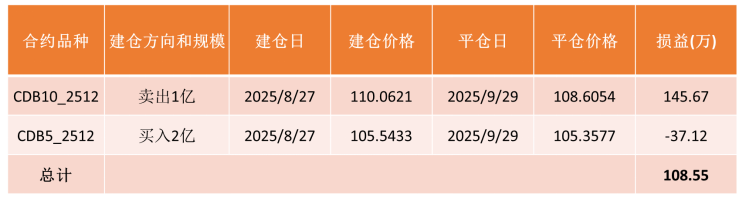 以下表为例,2025年2-8月,国开债10-5利差均处于波动区间的低位。8月27日,建仓尺度债券远期弧线套利策略头寸;9月29日,国开债10-5利差权臣回来,仇敌寸进行平仓。但需要隆重的是,要是建仓时刻较早,恭候利差回来可能需要较永劫刻,需仇敌寸进行移仓换季处理。