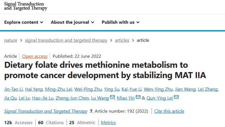 [3] Li, JT., Yang久久牛配资, H., Lei, MZ. et al. Dietary folate drives methionine metabolism to promote cancer development by stabilizing MAT IIA. Sig Transduct Target Ther 7, 192 (2022). https://doi.org/10.1038/s41392-022-01017-8