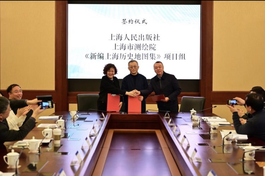 上海人民出版社分别与《新编上海历史地图集》项目组、上海市测绘院签约