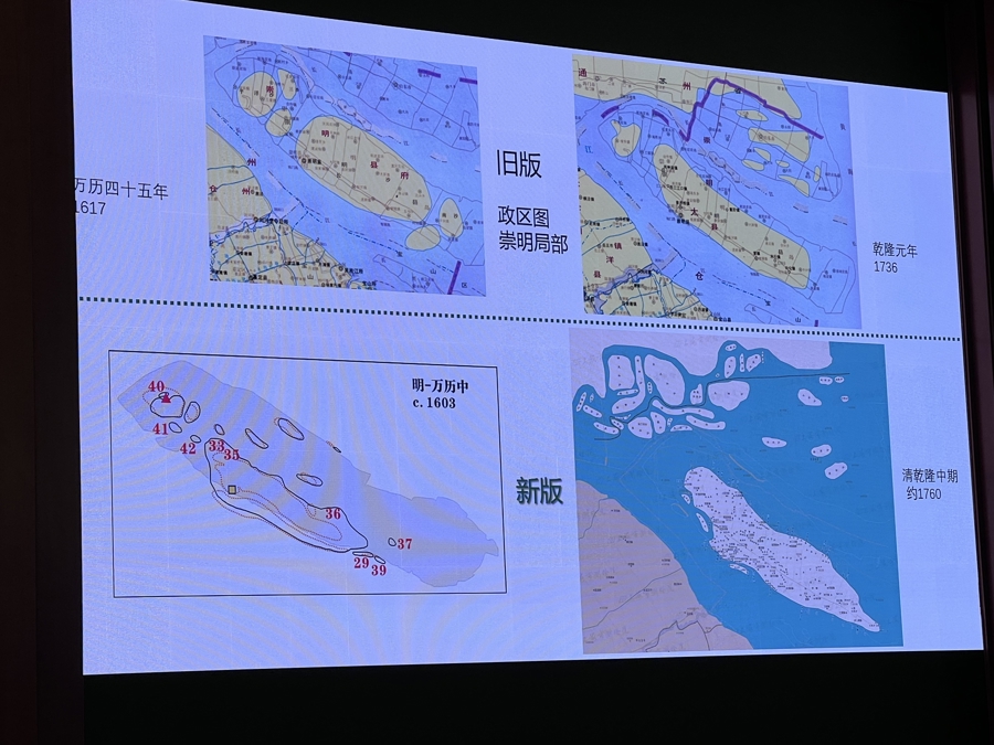 上海师范大学历史系副教授林宏、上海社科院历史研究所研究员牟振宇等通过各自负责的专题图部分,包括崇明岛图组、租界图组等,对崇明岛的自然地理变迁、上海租界空间演变的情况作了具体介绍。