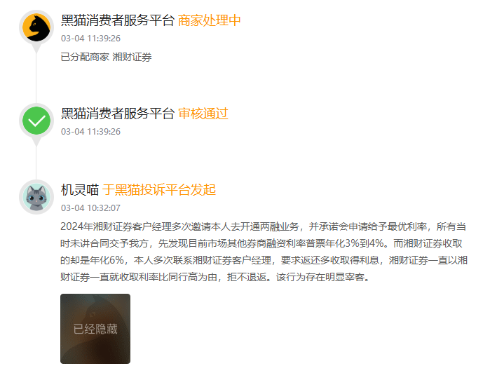 近日,湘财证券因两融利率收取问题遭耗尽者投诉维权。