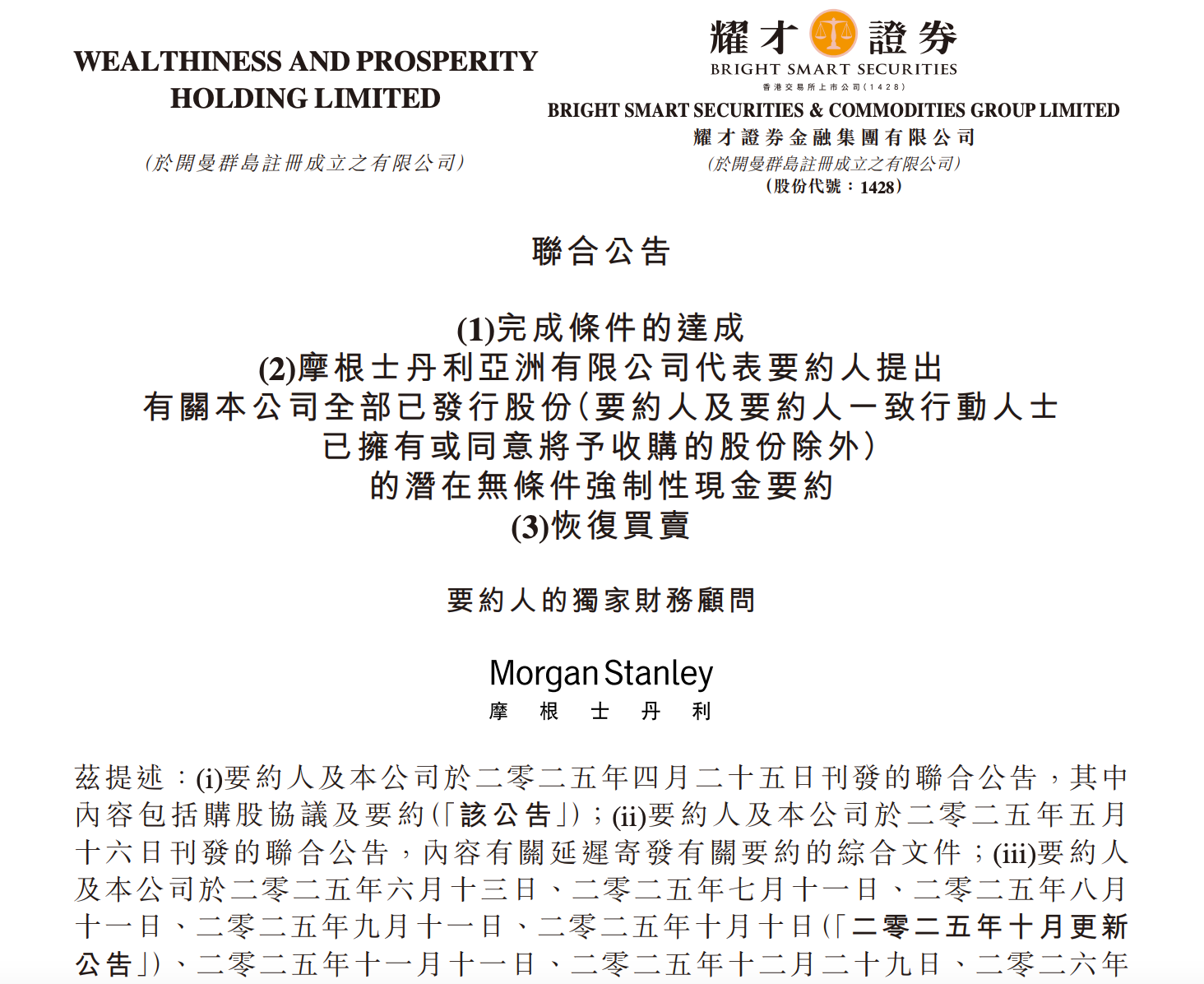 彼时的公告线路,生意两边已于2025年4月25日签订购股左券,走动股份约8.58亿股,占已刊行股份总额的约50.55%,星速优配总现款代价为28.14亿港元,且已支付了10%的按金。要约收购价钱为3.28港元/股,较耀才证券终末走动日在香港联交所的收市价2.79港元/股溢价约17.6%。