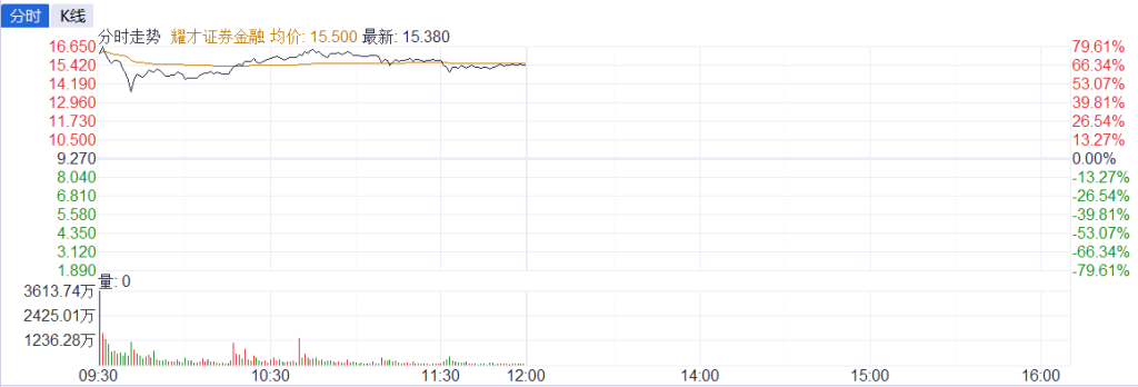 端正3月17日午间收盘,耀才证券金融股价涨65.91%,报15.38港元。最新市值为261.04亿港元。