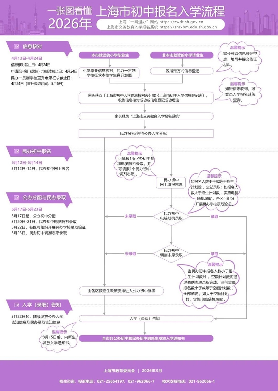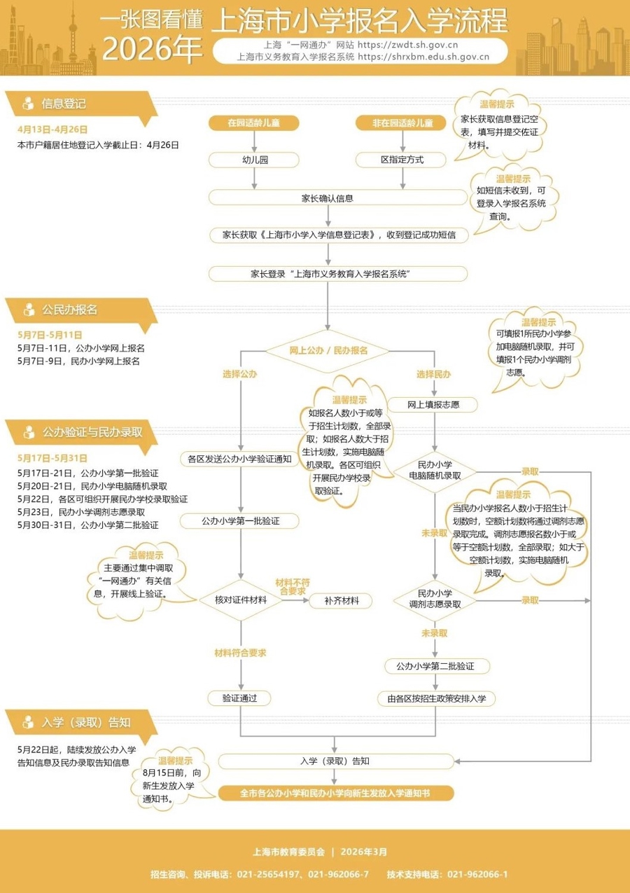来日(4月13日)起,上海幼升小信息登记、小升初信息查对。4月13日至4月26日为小学入学信息登记日,4月26日后不得更变入学信息。4月24日为本市小学五年岁学生初中入学关连信息查对、纠正罢休日。