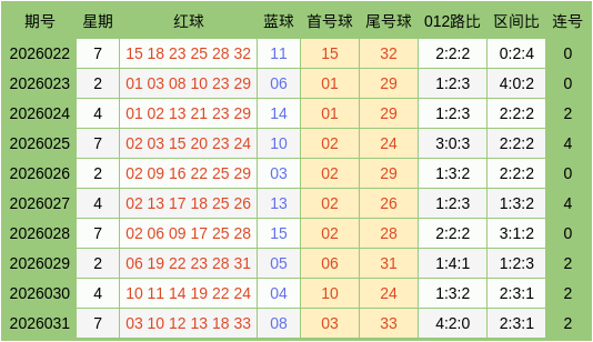 上期追思:双色球2026031期开出奖号:红球03、10、12、13、18、33,蓝球08。