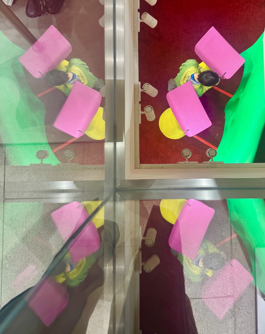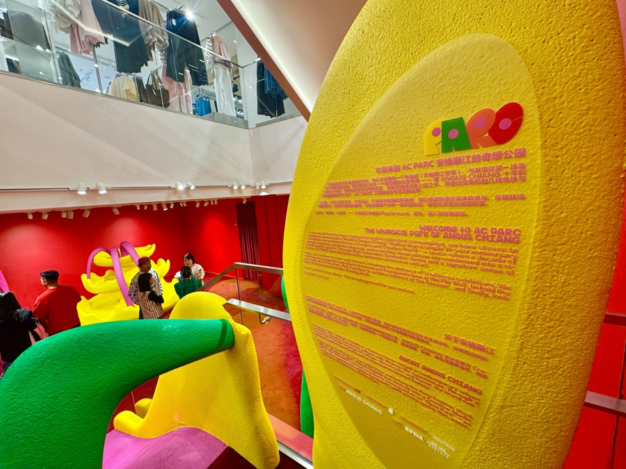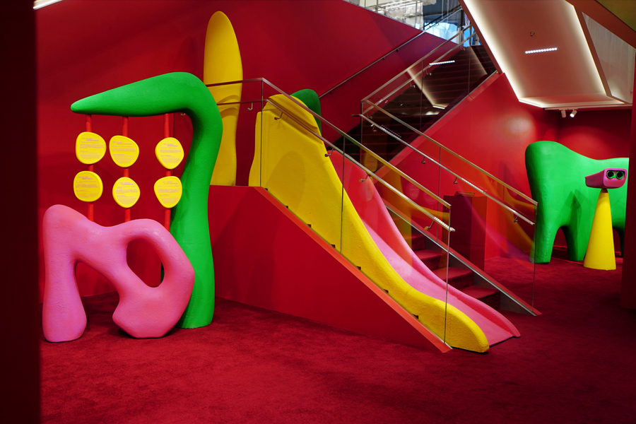 本次展览空间将 ANGUS CHIANG十年创作扩张转译为可被走进的创意天下。 通盘这个词空间被区别为“滑梯”“翻转墙”“喷池塘”“跷跷板”“沙堆”“局势台”等多个区域,通过贪图理念的三维立体延长,贪图师将标记性的色调碰撞、戏剧化几何格式组合与千里浸式互动贪图融入空间营造,以展示品牌积年发展端倪、系列衣饰、跨界和谐履行等,亦通过兴致抒发与互动,为参不雅者打造充满思象力的艺术场域,直不雅感受色调的情怀张力与格式的叙事力量。